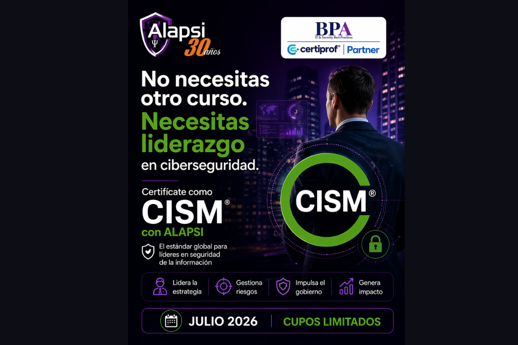 Les compartimos la invitación al curso CISM (Certified Information Security Manager) de ISACA, una certificación de alto nivel orientada a la gestión estratégica de la seguridad de la información.